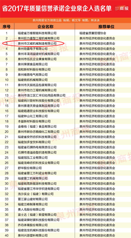 2017年質(zhì)量信譽(yù)承諾企業(yè)名單