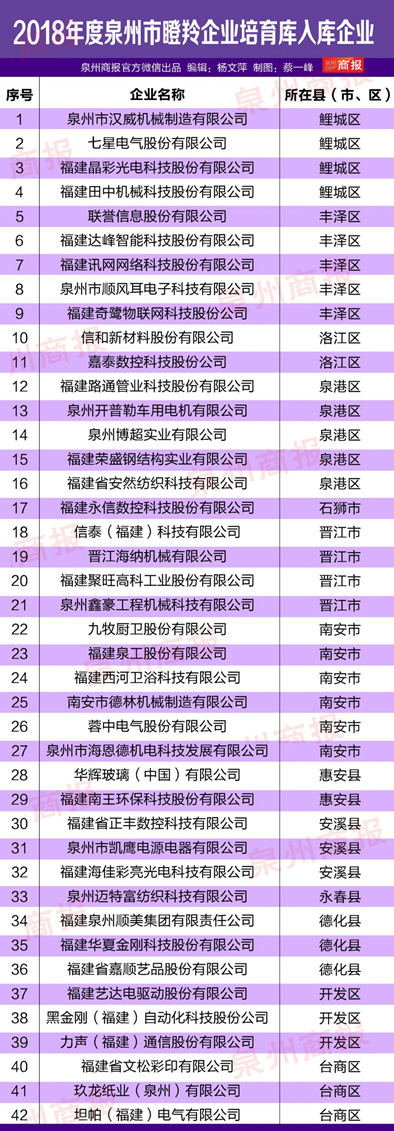 2018年度泉州市瞪羚企業(yè)培育庫(kù)入庫(kù)企業(yè)