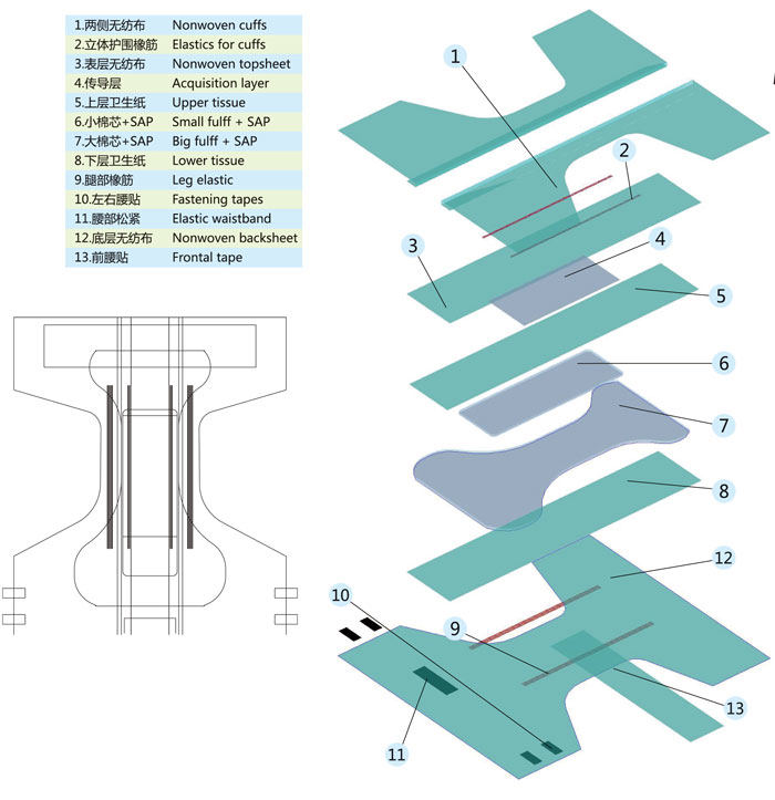 環(huán)抱式彈性腰圍高端嬰兒紙尿褲設(shè)備800PPM
