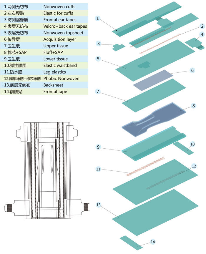 環(huán)抱式彈性腰圍高端嬰兒紙尿褲設(shè)備800PPM